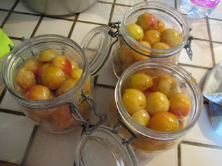 Préparer un sirop en faisant bouillir de l'eau avec 500g de sucre par litre d'eau. Attention il ne faut pas beaucoup de sirop dans chaque bocaux. |